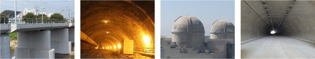 교량슬라브, 해상구조물, 지하구조물, 상 · 하수도 처리장, 오 · 폐수 처리 시설, 지하철, 지하도, 터널, 전력 통신용 암거, 수중구조물, 발전소 구조물
